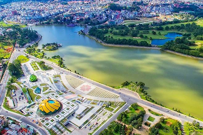 달랏의 중심지에는 '쑤언 흐엉 호수'가 있습니다. 호수 중심에는 소나무 길이 유명합니다.