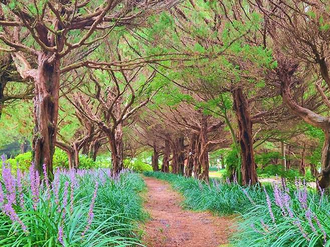 천여 그루의 향나무가 길게 뻗은 숲길을 걷다 보면 머릿속을 채우고 있던 복잡한 생각들이 자연스레 옅어진다.