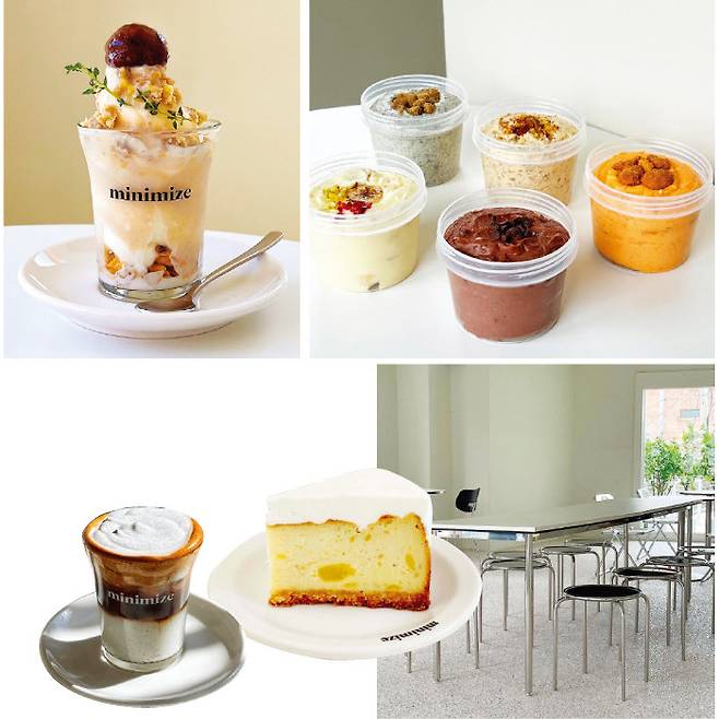 서울 지하철 녹사평역 부근에 자리 잡은 미니마이즈에서는 글루텐프리로 개발한 다양한 푸딩을 만나볼 수 있다. 나쁜 것을 최소화한다는 의미에서 상호명을 미니마이즈로 지었을 정도. 전 제품에 밀가루 대신 쌀을 활용하는가 하면, 단맛을 위해 코코넛 슈거 등을 첨가하는 등 건강한 메뉴를 만들기 위해 무척 신경 쓰는 모습이다. 얼그레이 초코칩, 흑임자, 피스타치오, 황치즈, 초코 등 이름만으로도 맛이 궁금해지는 푸딩이 다수. 특히 고구마 큐브가 콕콕 박힌 고구마 쌀푸딩은 달콤한 고구마와 고소한 쌀이 어우러져 건강하면서도 기분 좋은 맛을 느낄 수 있다. 달지 않아 많은 양을 먹어도 부담스럽지 않기 때문에 한 끼 식사로도 그만이다. 푸딩 외에 고구마 쌀치즈케이크가 준비돼 있으니 고구마 러버라면 두루두루 맛봐도 좋을 듯. 흑임자, 홍시, 밤, 말차 등 할매니얼 입맛을 저격하는 디저트류도 많다.