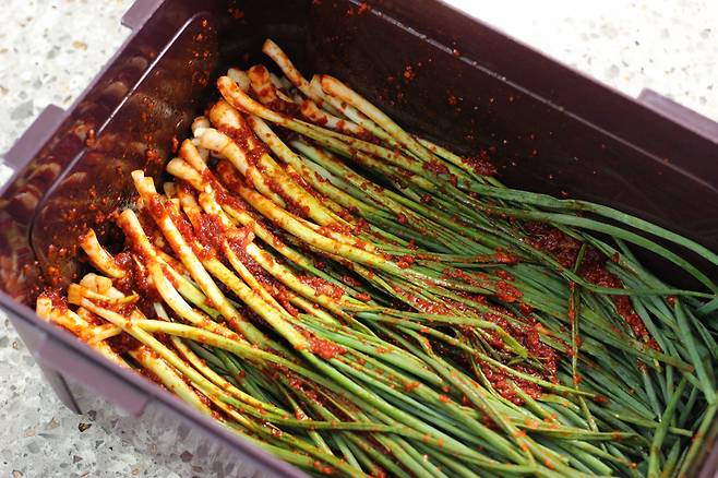 하지만 덜 익었을 때 파김치를 많이 먹으면 속이 아릴 수 있으니 좀 익은 뒤에 먹는 것이 좋겠지요.