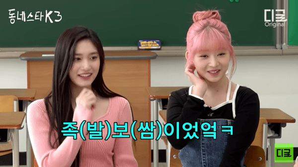 그리고 조나단은 "K-개족보"라고 프로필을 언급하며 진행을 이어갔는데, 이를 들은 레이는 "개족보요?"라며 다시 물었고, 이서는 "밥 먹을 때 우리가 '족보'를 좋아한다. 족발 보쌈"이라고 대답했습니다.