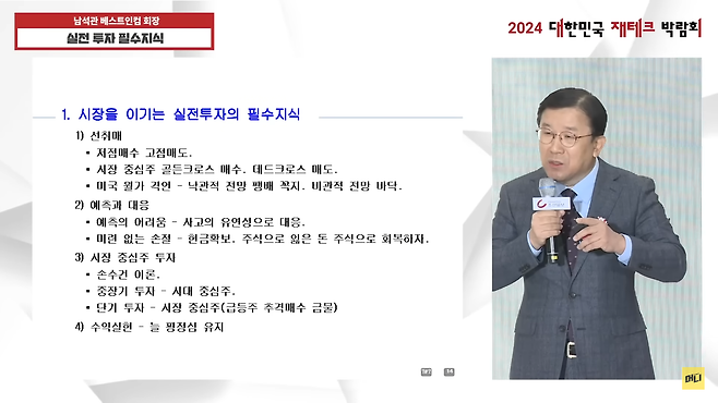 남 회장은 “개인 투자자들이 주식으로 손실을 보는 이유는 간단하다”며 “대부분 고점에서 매수하기 때문”이라고 했다. 당연한 얘기지만 이미 많이 오른 종목은 피하라는 것이다. 남 회장은 “작년과 재작년에 많이 올랐던 주식을 쳐다보지 말아야 한다”며 “주식 시장은 새롭고 신선한 뉴스에 크게 반응하기 때문”이라고 했다. 그는 “앞으로 10년 내 가장 혁신적인 분야로 뽑히는 AI(인공지능)과 양자기술, 핵융합기술 시장을 잘 주시해야 한다”고 했다.