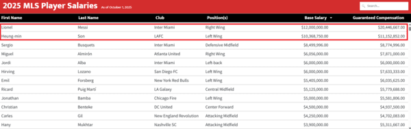 [SPORTALKOREA] 황보동혁 기자= 최근 메이저리그사커(MLS) 역대 최고 이적료 기록에서 밀린 손흥민(로스앤젤레스 FC)이 이번에는 연봉 순위에서도 밀릴 가능성이 제기됐다.