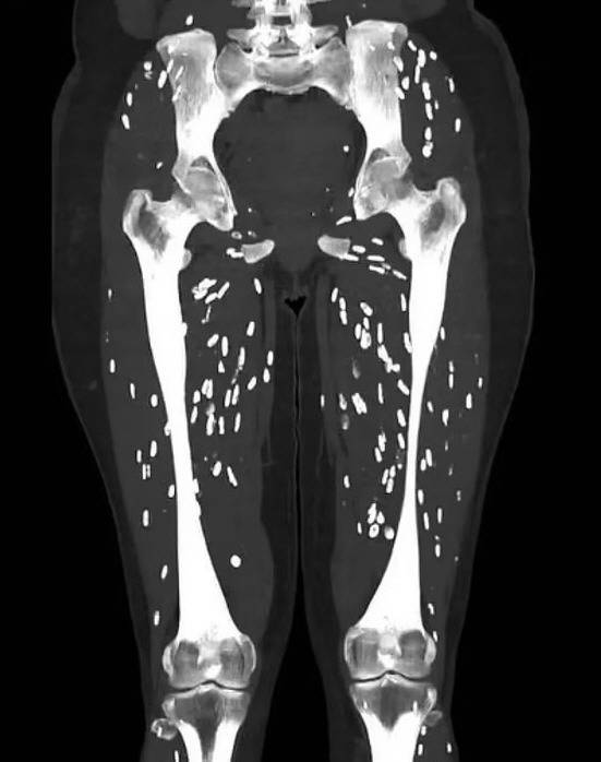 트란스케이 대학 신경학과 내과 의료진에 따르면, 42세 남성은 약 2년간 두통과 함께 복부에 0.7~2.5cm 크기의 여러 종양이 생기는 증상을 보였다.