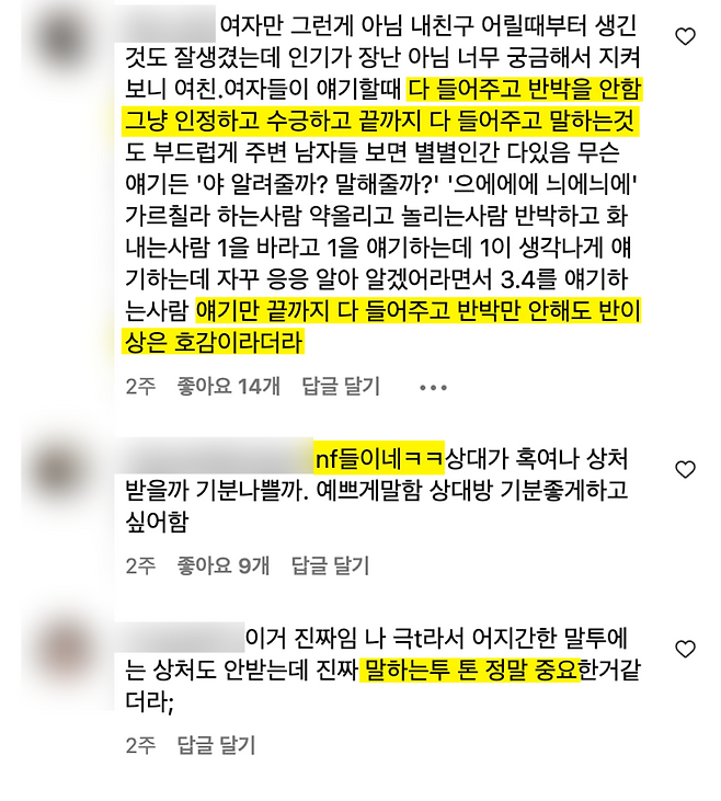 말투라는 의견이 정말 많았어요.