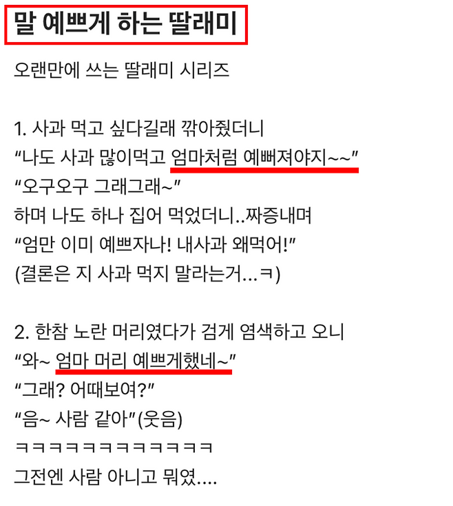 그리고 엄마, 아빠의 말투가 예쁘다면