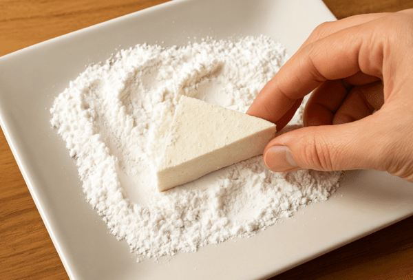 두부는 간이 약한 식재료라 소금과 후추로 살짝 밑간을 해주는 게 좋다. 그다음 겉면에 전분가루를 얇게 묻혀주는 게 포인트인데, 이렇게 하면 겉은 바삭하고 속은 촉촉한 식감이 살아난다. 전분은 너무 많이 묻히면 두껍게 익어버릴 수 있으니 얇게 입혀주는 게 좋다. 팬에 기름을 두르고 중불에서 노릇하게 익혀주는 것만으로도 이미 맛있는 기본이 완성된다.