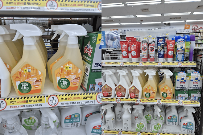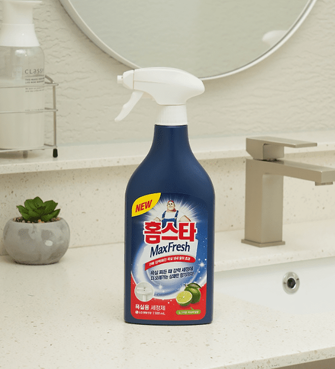 락스성분이 들어가지 않은 세제가 있다고? '홈스타 욕실을 부탁해'입니다. 락스 성분 없이도 물때 제거에 탁월한 세제인데요. 약산성 성분으로 물때와 찌든때를 없애는데 효과적이고, 락스 특유의 독한 냄새가 없어 향긋한 라임향으로 머리 아프지 않은 청소를 할 수 있게 도와주는 제품입니다. (3000원 / 품번:1025197)
