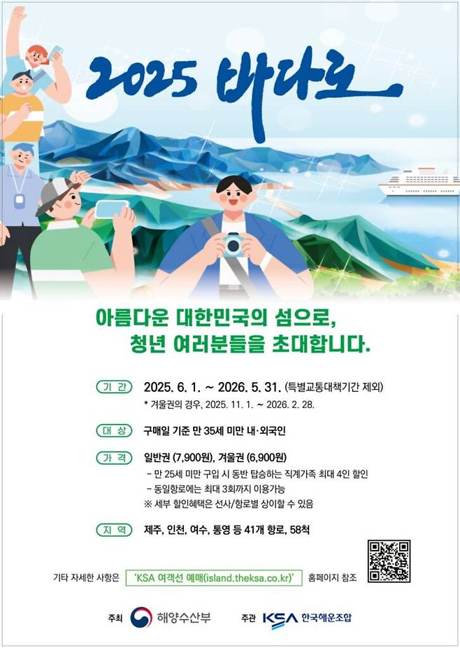 특히 올해 처음 도입된 ‘가족권’ 제도는 만 24세 이하라면 본인을 포함해 5명까지 함께 할인 혜택을 받을 수 있어 가족 단위 섬 여행이 더욱 수월해질 전망이다.