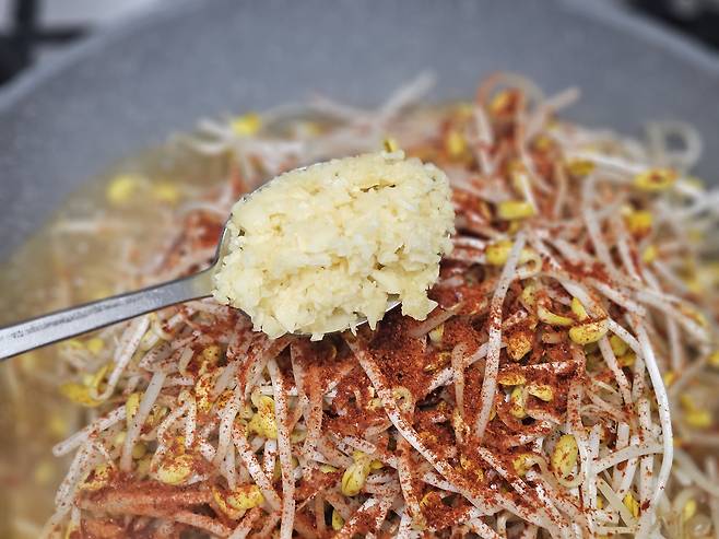 이 요리의 포인트는 바로, 콩나물을 삶지 않고 바로 볶는 거에요. 삶으면 콩나물이 물러지고 수분도 많이 생기는데, 그냥 볶으면 식감이 아삭아삭 살아있고 양념도 착 감기더라고요. 고춧가루의 매콤한 향이 입맛을 확 살려줘서 요즘같이 입맛 떨어질 때 딱인 반찬이에요.