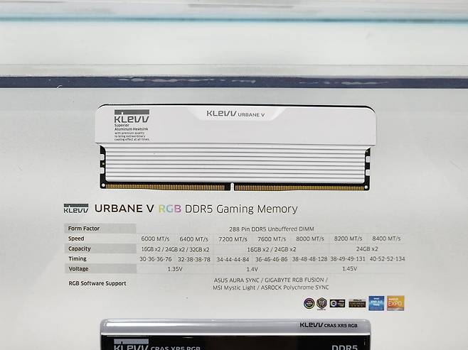 이번 컴퓨텍스2024에서 공개된 URBANE V RGB은 최대 8400MT/s의 속도를 발휘하는 고성능 메모리다. 고품질의 알루미늄 합금 화이트 히트싱크와 RGB 조명을 탑재했으며 클레브의 규격화된 오버클럭을 지원한다.