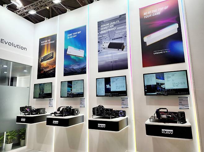 컴퓨텍스2024에서 고성능 PC컴포넌트를 논하는데 에센코어 클레브(ESSENCORE KLEVV)가 빠질 수 없다. 에센코어는 2014년 설립된 이래 D램 모듈과 낸드플래시를 전문적으로 선보인 글로벌 기업으로, 그중 프리미엄 브랜드인 '클레브'를 통해 다양한 고성능 PC메모리 모듈과 SSD 등을 선보여 왔다.