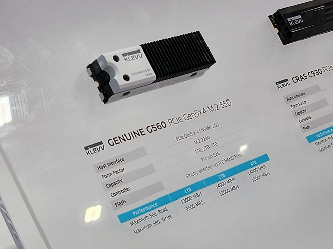 PCle Gen5 방식의 M.2 SSD 등 에센코어가 자랑하는 SSD도 여럿 전시되었다. 출시를 앞둔 GENUINE G560 제품의 경우, 최대 읽기 14000 MB/s 최대 쓰기 12000 MB/s라는 높은 성능을 갖췄으며, 용량은 최대 4TB를 지원한다.
