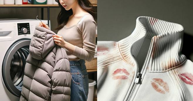 옷을 입고 벗다보면 니트의 목덜미나 패딩의 깃 부분에 파운데이션이나 립스틱이 묻은 경험이 있으실텐데요. 화장품은 오일 베이스나 실리콘 베이스로 만들어져 있어 쉽게 지워지지 않습니다. 화장품 얼룩을 지우려면 부분 세탁을 먼저 진행해줘야합니다.