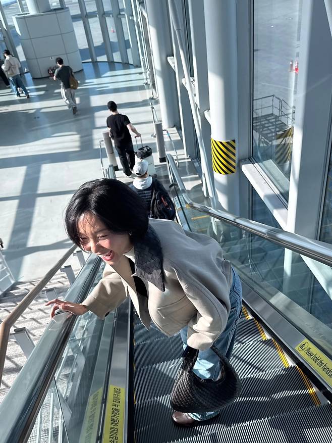 특히 재킷의 칼라와 색을 맞춘 블랙 가죽 가방을 포인트로 활용해서 전체적인 코디의 통일감을 주며 안정적인 밸런스를 보여주고 있어요.
