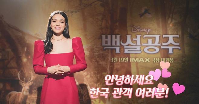 [뉴스엔 배효주 기자] '백설공주' 개봉을 앞둔 레이첼 지글러가 한국 관객에게 영상 메시지를 띄웠다. 3월 19일 개봉하는 영화 '백설공주'(감독 마크 웹)는 디즈니 첫 번째 프린세스 ‘백설공주’
