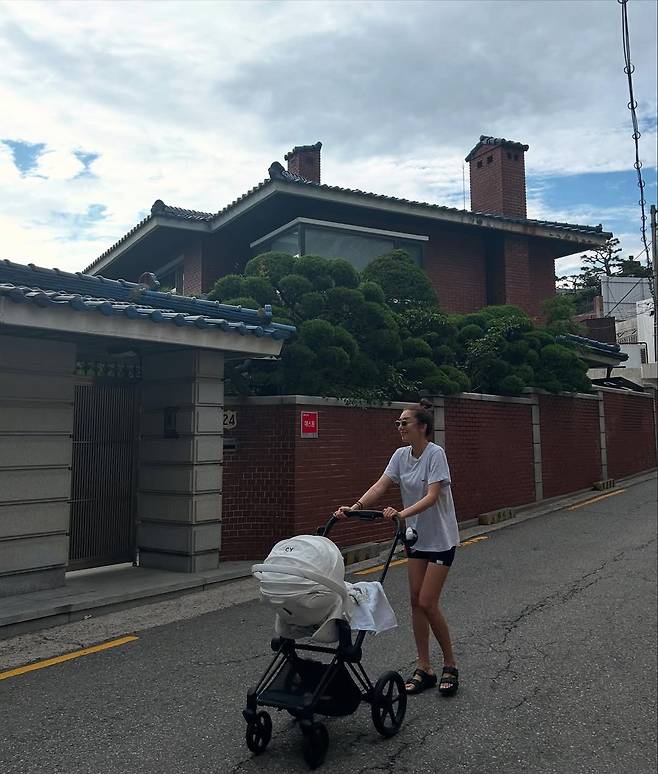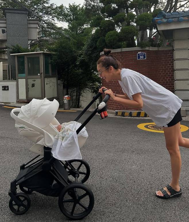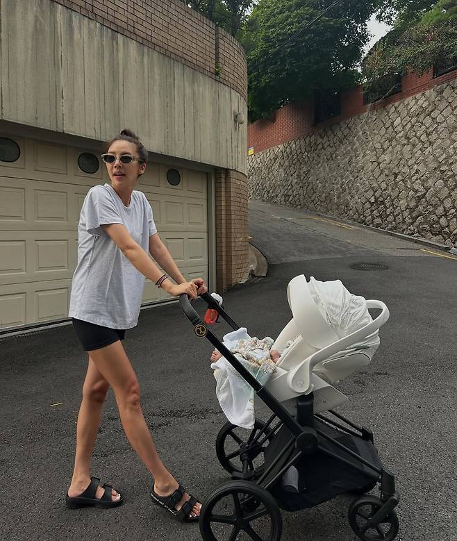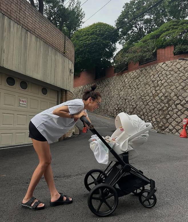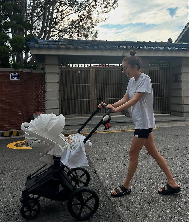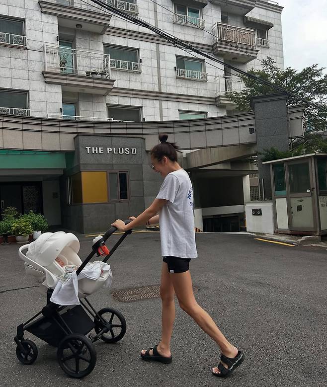 유모차를 밀며 걷는 모습에서 41세라는 나이는 전혀 느껴지지 않았다.