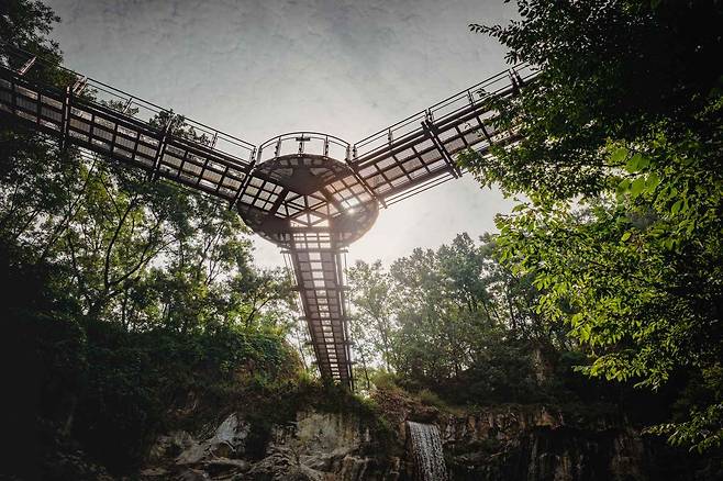 무엇보다 중앙 데크 구간은 바닥이 투명 유리로 되어 있어 발밑 풍경이 그대로 드러납니다. 하늘을 걷는 듯한 기분에 살짝 아찔하지만, 그만큼 짜릿하고 사진 찍기 좋은 포인트예요.