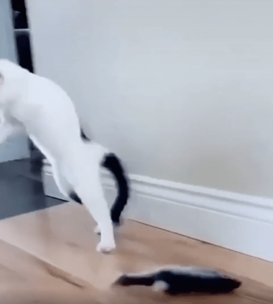하지만 그게 끝이 아닙니다. 몇 초 뒤, 고양이는 다시 슬금슬금 다가옵니다. 이번엔 살짝 고개를 갸웃하며, 조심스럽게 냄새를 맡고, 앞발로 더 가볍게 툭— 그리고 다시 퍼덕! 이번에도 깜짝 놀라며 작은 점프를 하지만, 이전처럼 크게 물러서지는 않습니다. 그러더니 어느 순간, 고양이의 눈빛이 달라집니다. 무서움은 호기심으로, 호기심은 욕망으로 바뀌는 전환의 타이밍.