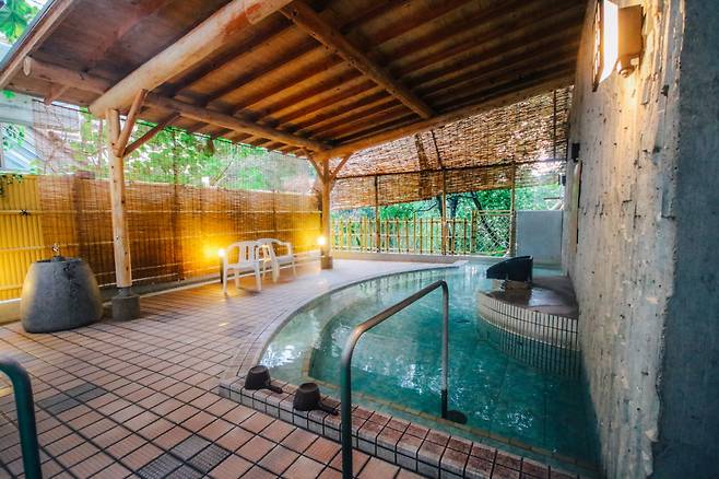 메인 온천은 총 2개인데, 요일별로 성별을 바꿔가며 운영한다. 각 탕에는 후지산 뒤로 붉게 물드는 석양 벽화가 그려져 있거나, 학 장식이 세겨져 있다. 온천 성분이 탄산수소염천으로 이뤄져 있어 탕에 몸을 담고 있으면 피부가 금세 부드러워지는 것을 체감할 수 있다. 그 효과가 워낙 좋아서 '미인탕'이라고 불리기도 한다.
