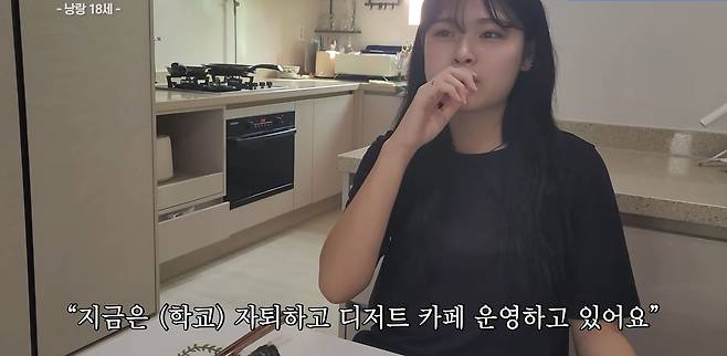 안녕하세요. 제 이름은 김민지고 18살입니다. 지금은 자퇴하고 디저트 카페 운영하고 있어요. 만 나이로는 16살이에요. 학년으로 치면 고등학교 2학년이에요.