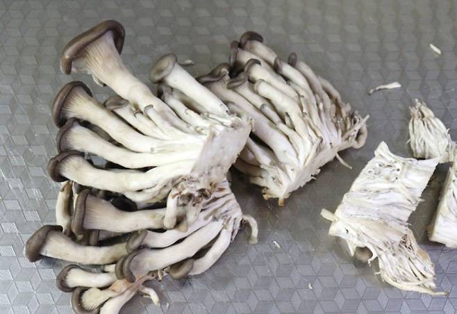 느타리버섯은 밑둥을 잘라내고 얇게 찢어서 준비해 주세요. 살짝 데친 후 찬물에 헹궈서 물기를 빼면, 씹는 맛이 더 부드럽고 맛있어요.