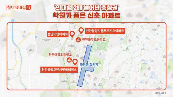 이로 인해 충청권 주요 학군지로 꼽히는 천안 서북구 불당동, 대전 서구 둔산동 등에는 의대 진학을 준비하는 학생들이 몰릴 것으로 전망된다. 6년간 해당 지역 학교를 다닌 후 졸업하면 의대 신입생 60%를 선발하는 ‘지역인재전형’을 선택할 수 있다. 중학교 배정 전 해당 지역으로 전입하려는 수요는 주택 수요로 이어질 가능성이 높다.