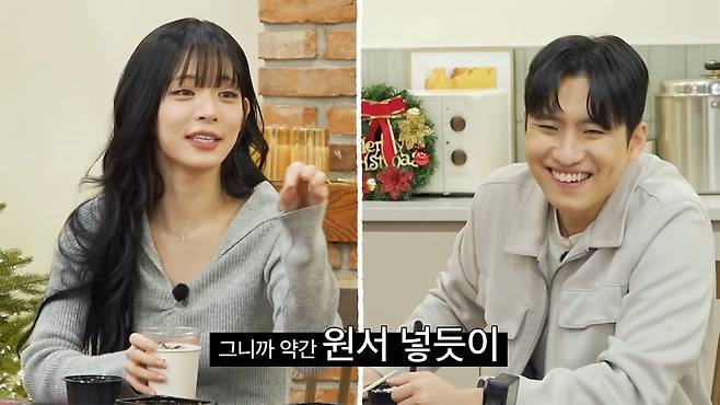 식사를 하며 다양한 이야기를 나누던 중 이채영이 미미미누에 "미누 님 이상형 얘기해보세요. 연예인으로 따지면 어떤 분?"이라 물었다. 이에 미미미누는 "저는 최근에 백지헌 님이 눈에 들어오더라고요"라며 영상에 출연하지 않은 다른 프로미스나인 멤버인 백지헌을 언급했다. 이에 이채영은 "'지'를 좋아하네. 지원에서 지헌으로 갈아탄 거 보니까"라고 너스레 떨었다. 옆에서 그 말을 듣던 박지원도 "왜 나에서"라며 미미미누를 협공했다. 이에 미미미누는 백지헌을 고른 이유로 자신의 이전 콘텐츠에서 새벽 5시에 백지헌이 나와줬다고 해명했다.