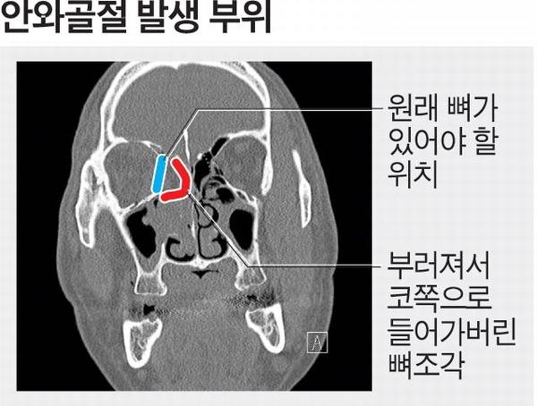 안와(눈구멍) 골절은 눈을 감싸고 있는 아주 얇은 뼈가 외부 충격으로 부러지는 것을 말한다.