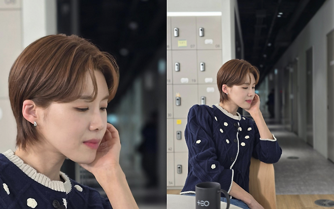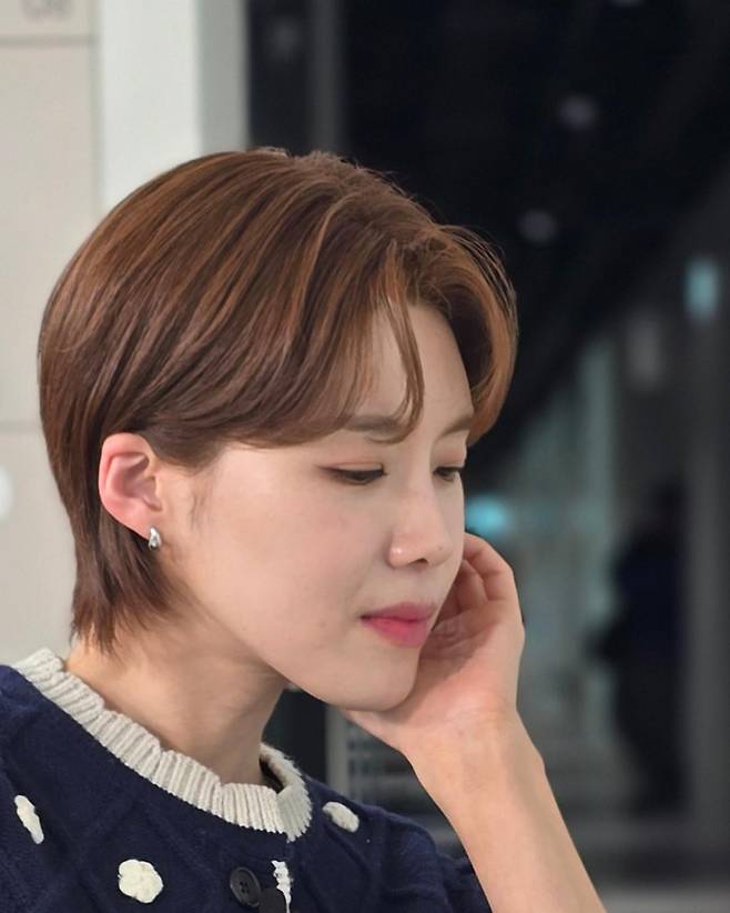 숏컷의 대명사 장도연답게 숏컷 헤어가 날렵한 턱선을 더욱 돋보이게 하고 있습니다.
