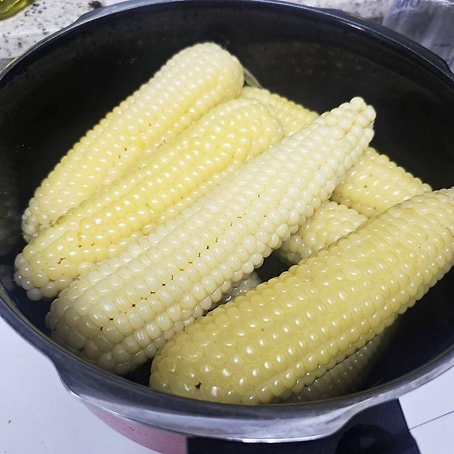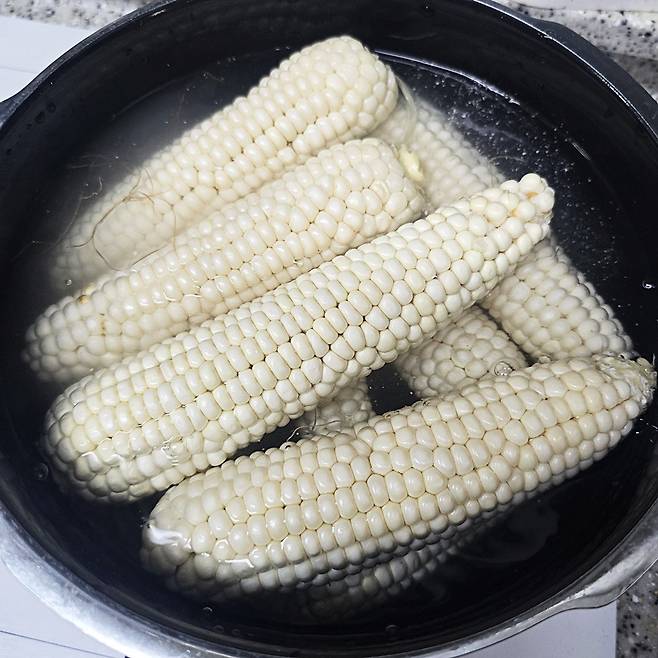 물은 옥수수가 살짝 잠길 정도만 넣어주세요.