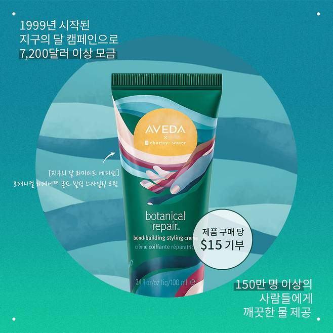 아베다야말로 1999년부터 일찌감치 지구의 달 캠페인을 전개한 브랜드인데요. 매년 지구의 달 한정판 패키지로 깨끗하고 안전한 식수 공급을 위해 힘쓰는 비영리 단체 ‘charity: water’에 기부를 이어오고 있죠💦