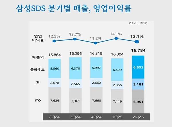 한편 삼성SDS는 2분기에 연결기준 매출 3조5120억원, 영업이익 2302억원을 기록했다. 전년 동기 대비 매출과 영업이익이 각각 4.2%씩 증가했다. 같은 기간 당기순이익은 1760억원으로 7.6% 감소했다.