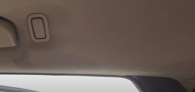 실내에 들어와 차량의 상태를 확인해보니 실내 천장의 여기저기가 젖어있는 것을 확인 할 수 있었습니다. 썬루프를 통해 유입된 물이 빠져나갈 곳이 없어 차량 천장에서 내려와 실내가 다 젖는 상황이 되었습니다. 만약 실험 시간이 좀 더 길었으면 실내가 젖는 수준이 아닌 차량 내부 침수 상태가 될 수 있었을 것입니다.