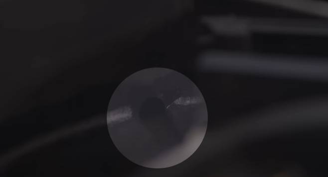 실제로 선루프 안쪽에 물이 고였을시에 어디쪽으로 배수가 되는지 알아보기 위해 직접 선루프 배수구멍으로 물을 부어보았습니다. 정상적인 선루프에서는 물이 배수구멍을 타고 나가서 앞범퍼 쪽으로 빠져나가는 모습을 볼 수 있습니다.