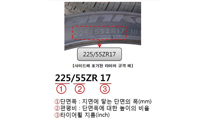 타이어 교체를 저렴하게 하기 위해서는 첫 번째로 해야 할 일은 내 타이어 스펙을 확인하는 거다. 내 타이어 스펙도 모르면서 교체를 한다는 건 말이 되지 않으니 말이다. 확인하는 방법은 타이어의 옆면을 보면, 위 사진과 같이 숫자와 알파벳이 적혀 있을 거다. 앞에 세 자리는 단면폭이고, 가운데 두 자리는 편평비, 끝에 두 자리는 타어어휠 지름이다. 여기까지 따라왔다면 반 이상한 것이나 다름없다. 잘 따라오고 있다.