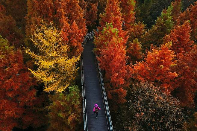 대전 서구에 위치한 장태산자연휴양림은 국내 최대 규모의 메타세쿼이아 숲을 자랑하는 곳으로, 가을철에는 황금빛으로 물든 숲길이 장관을 이룹니다.