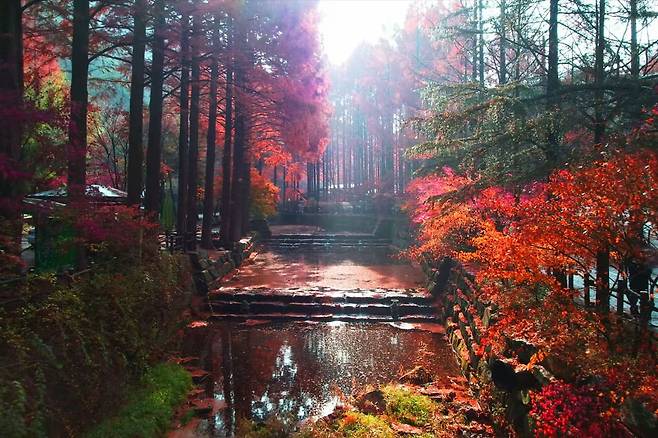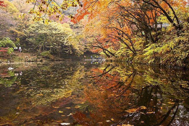 또한, 쌍계루 연못에 비친 단풍의 반영은 자연이 만들어낸 아름다운 풍경을 더욱 극적으로 보여줍니다.