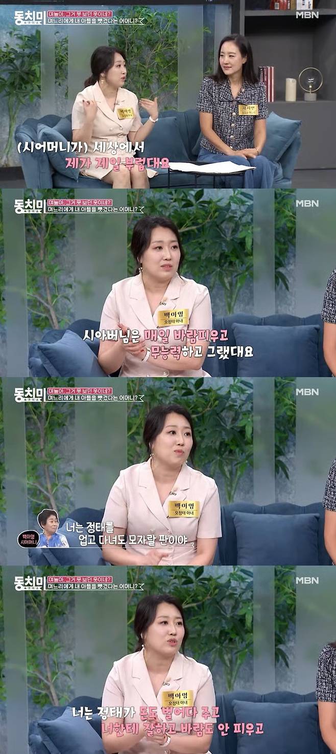 백아영이 말하길, 시어머니는 늘 "너는 남편 잘 만난 거다"라고 말한다.