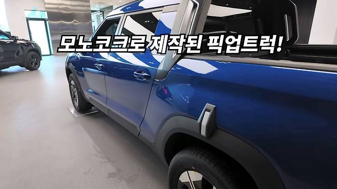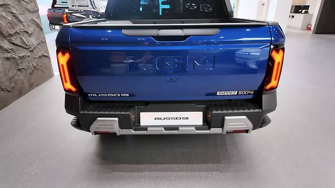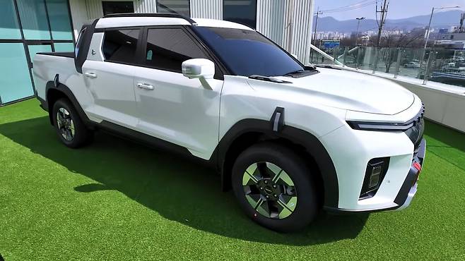 무쏘 EV는 KGM의 모노코크 구조 바디로 제작되어 픽업트럭으로서의 견고함과 일상적인 사용에도 적합한 모습을 보여준다. 전반적인 디자인 요소들이 실용성과 내구성을 겸비하고 있다.