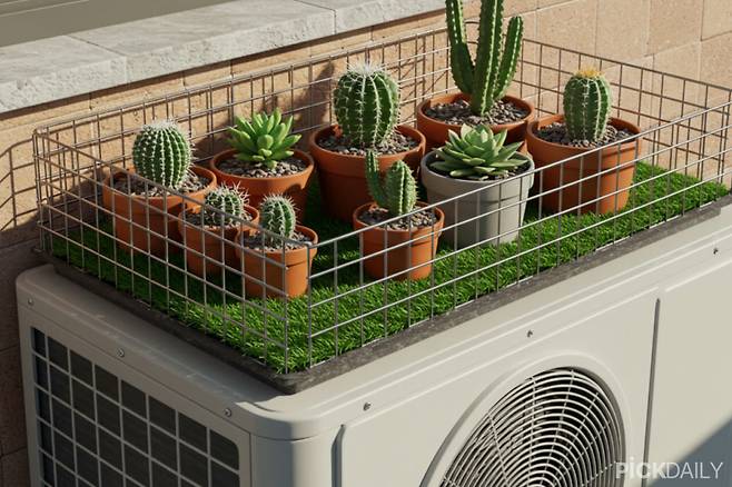 실외기 위를 선반처럼 활용해 화분을 올려두는 경우도 많은데, 이 역시 위험하다. 화분 자체가 무거워 실외기 덮개나 상판에 하중이 가해질 경우 외부 구조물이 변형되거나 파손될 위험이 있다.