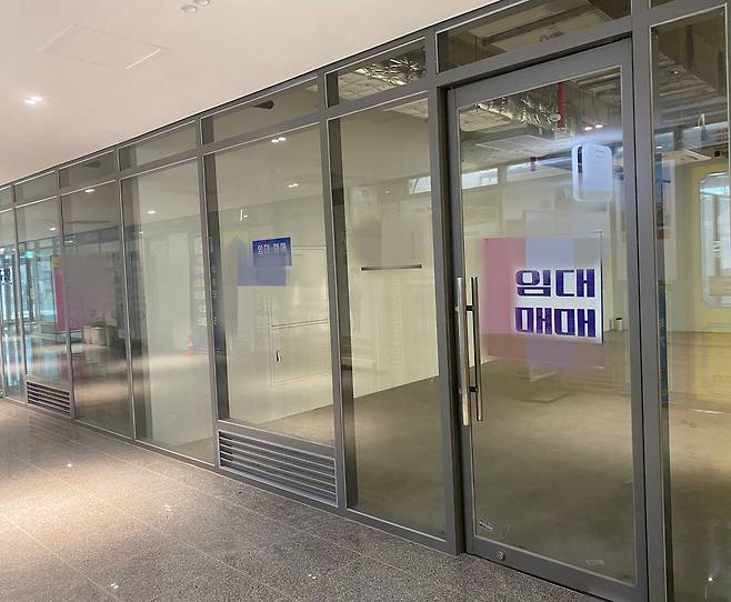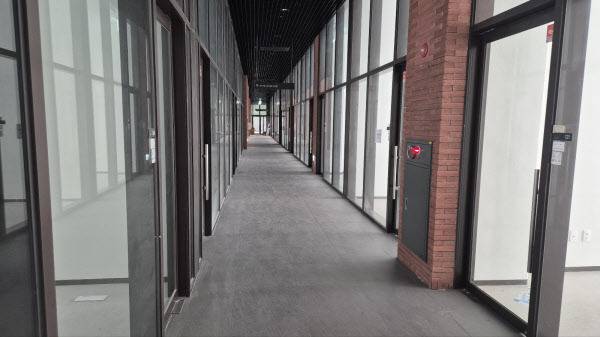 그러나 외관에서 느껴지는 웅장함과 달리, 내부는 입구부터 공실 상가가 눈에 띈다. 복도 양옆에도 빈 상가들이 즐비하며, 임대 홍보물이 여기저기 붙어 있어 임차인을 찾기 어려운 상황임을 알 수 있다.