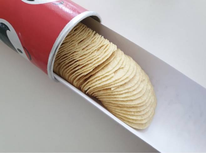 프링글스를 눕혀서 한쪽 방향으로 몰아주세요