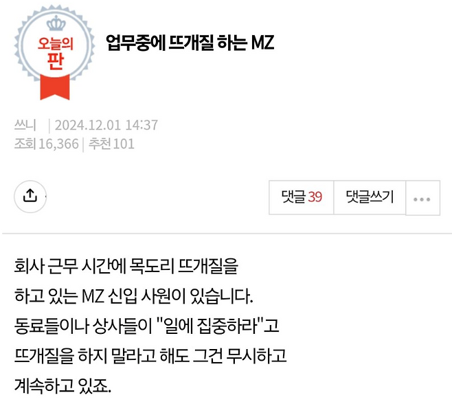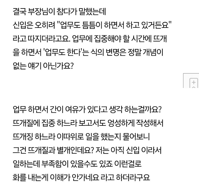 업무중 뜨개질 하는 신입사원 레전드