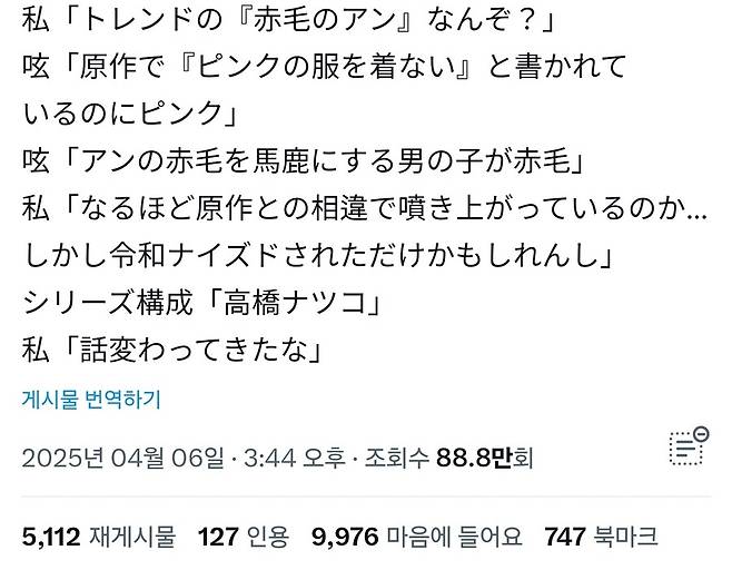 팬 : '앤의 빨간머리를 놀리는 남자애가 빨간머리'