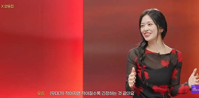 큰 무대보단 작은 무대가 더 긴장된다는 안유진은 "오늘 느낀 건데, (무대가) 작아지면 작아질수록 긴장하는 것 같다. (무대가) 크면 사람 얼굴이 잘 보이지 않으니까 '이분들은 다 날 엄청 좋아해'라고 마음을 설정할 수 있다. 근데 지금은 한 분 한 분 다 보이니까 부담스러운데, '관중'으로 보일 땐 긴장이 안 된다"고 고백했다.
