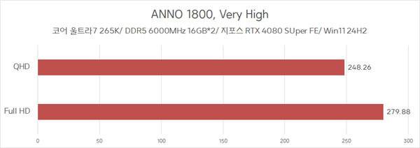 결과는 보다시피 충분히 뛰어난 성능을 보여준다. 지난 코어 울트라 9 285K 기사 테스트 결과와 비교하면 ANNO 1800과 FF14 Dawntrail 같이 다른 게임보다 CPU 의존도가 높은 타이틀처럼 아쉬운 모습도 보인다.