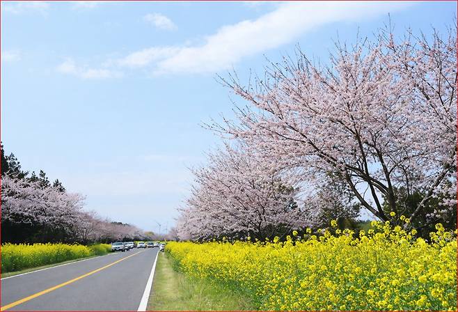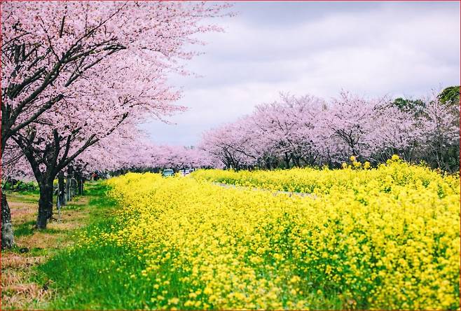 두 계절의 교차점: 보통 1월부터 피기 시작하는 유채꽃과 3월 말에 개화하는 벚꽃이 동시에 절정을 이루는 3월 중순에서 4월 초가 이 도로의 진면목을 볼 수 있는 시기입니다.