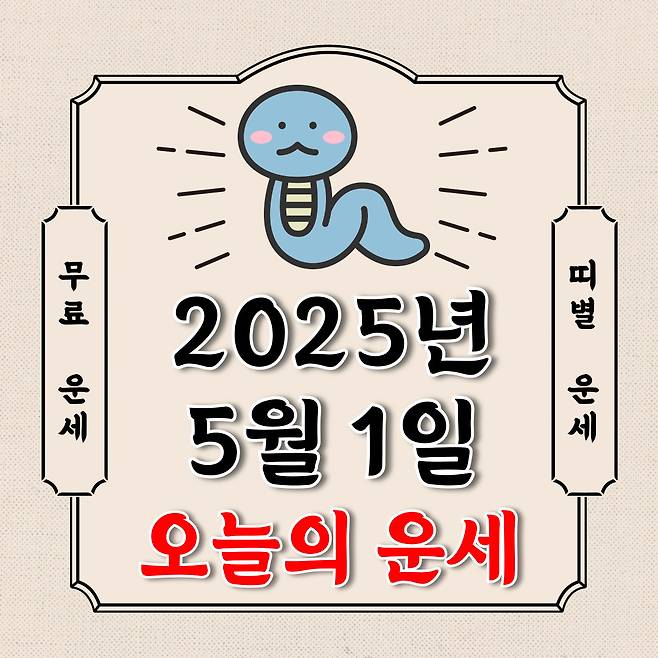오늘의 운세 2025년 5월 1일 목요일 (음력 4월 4일 / 띠별 운세 / 생년월일 운세)에 대해 알아 보겠습니다.