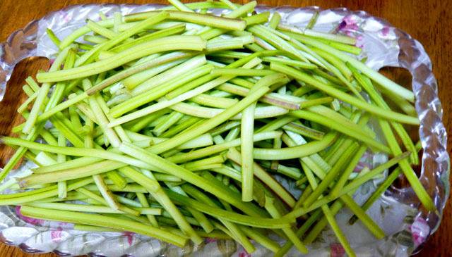 끓는 물에 5분 이상 데친 후 찬물에 헹구는 과정으로 독성을 제거해야 합니다.